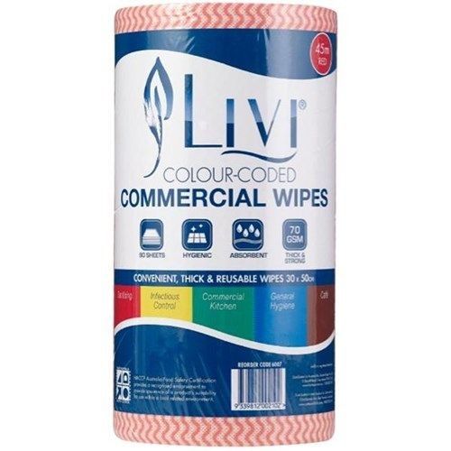 Livi Cloth Wipes are hygienic and absorbent. The perforated roll makes it easy to use. They are convenient, thick & reusable. Available in blue, green and red to avoid cross contamination.