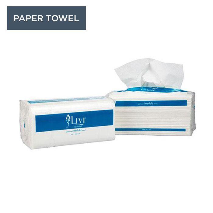 Livi Essentials Interfold, a wider towel was once very common. Suits many applications and although it has its own unique dispenser, it comes in a handy sealed hygienic packet from which it can also be dispensed.