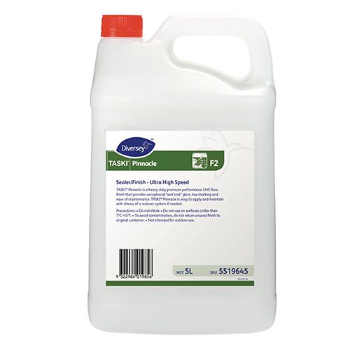 Pinnacle is a heavy duty premium performance Ultra High Speed floor finish that provides exceptional “wet look” gloss, low marking and ease of maintenance. Pinnacle is easy to apply and maintain with choice of a restorer system if needed.
