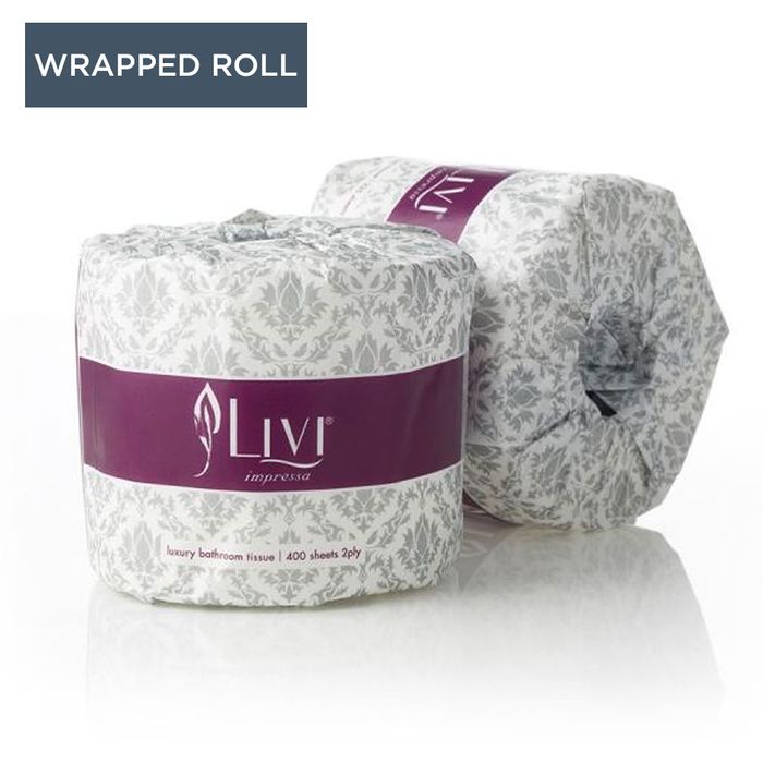 Livi Impressa luxurious 2 ply toilet tissue will make a statement in any bathroom. Individually wrapped for hygiene, the Impressa rolls are soft, absorbent and embossed for a gentle touch.