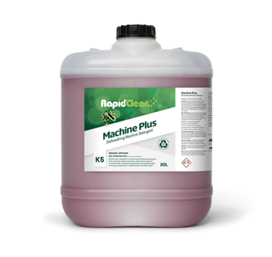 Machine Plus dish and glass washing detergent is designed for use with Automatic Dispensing Equipment and the mechanical washing of glassware, dishes and food equipment. It contains alkaline detergents combined with soil suspending agents and anti-scaling components