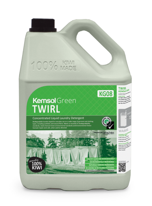 Biodegradable laundry liquid for everyday use on a wide range of garment and clothing types, including synthetic and natural fibres. Meets or exceeds EU biodegradability standards, meets Kemsol Green environmental standards and Environmental Choice licensed. Septic tank safe, when used as directed.