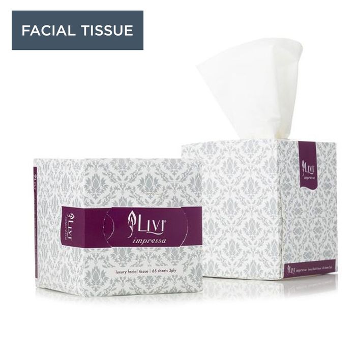 Livi Impressa facial tissues are super soft and thick with luxurious 3 ply sheets. Presented in a stylish cube for convenience and a lasting impression. They are gentle on the skin and hypoallergenic making them suitable for a wider range of people. A great accessory to offer in hotels as well as having in offices, desk spaces or at home. Highly absorbent and come in a cube box with 65 sheets.