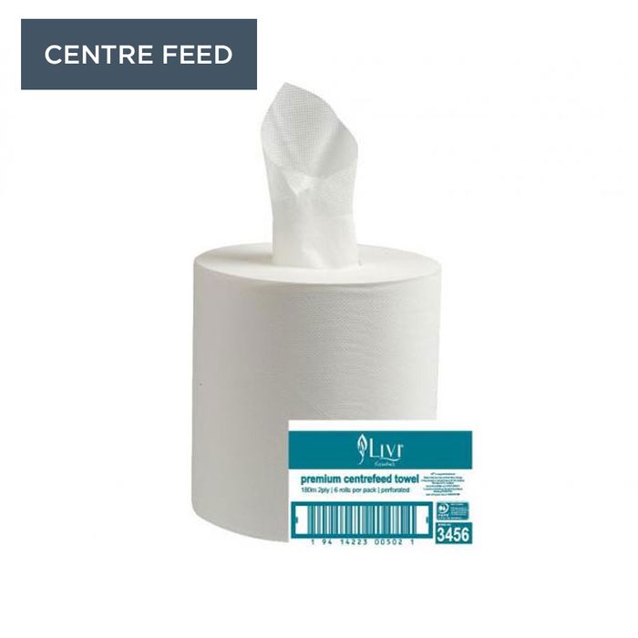 Livi CENTREFEED 2PLY PAPER TOWEL 180m x6 ROLLS #3456